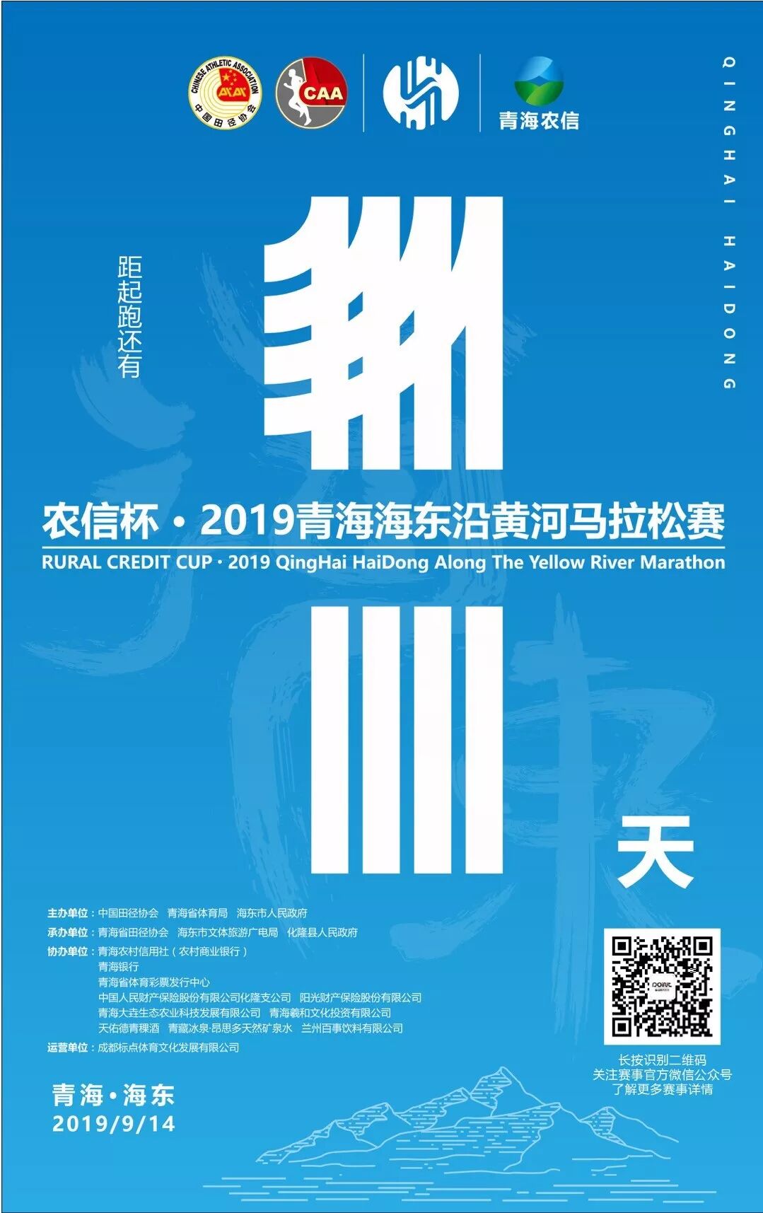 本次比赛设马拉松和欢乐跑两个项目,路线长度分别为42.195公里、5公里。共组织6000人参赛。其中马拉松2000人,欢乐跑4000人,在去年半程基础上升级为马拉松赛。 赛事以“驰骋海东-决战黄河”为主题,由中国田径协会、青海省体育局、海东市人民政府、青海省体育总会共同主办,青海省田径运动协会、海东市文体旅游广电局和化隆县人民政府承办,青海省农村信用社、青海农村商业银行协办。 举办这项赛事是贯彻落实《国务院关于加快发展体育产业促进体育消费的若干意见》和省委省政府关于促进全民健身运动发展的重要举措,也是传承弘扬黄河文化,展现海东独特魅力,展示海东经济社会发展成果,争取在2020年将“青海海东沿黄河马拉松赛”升级为中国田径协会铜牌赛事。